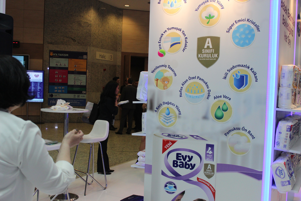 EVYAP’ın ana sponsor olarak katıldığı fuarda hem kurumsal marka hem de ürün iletişiminin yapıldığı standı tasarlarken fiziki şartları göz önünde bulundurduk. Merkezi noktadaki stand çözümümüz ürün teşhiri ve görüşme alanlarını içeren bir yapıda tasarlandı.